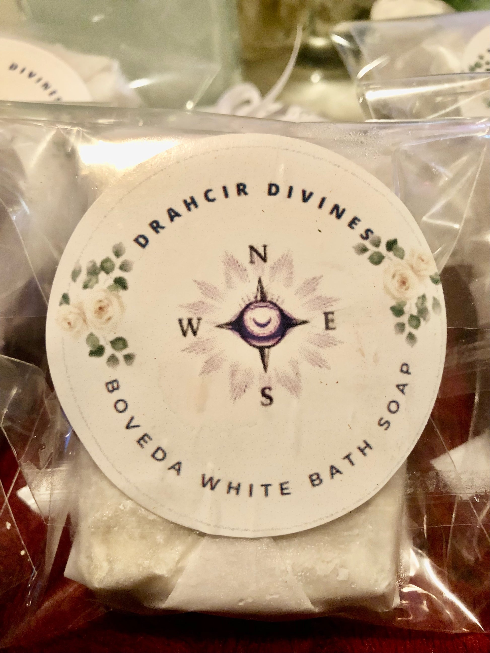 When you need a complete white bath in one bar of soap, try our Boveda White Bath Soap made of goat milk, rum, cascarilla, white flowers, and florida water.