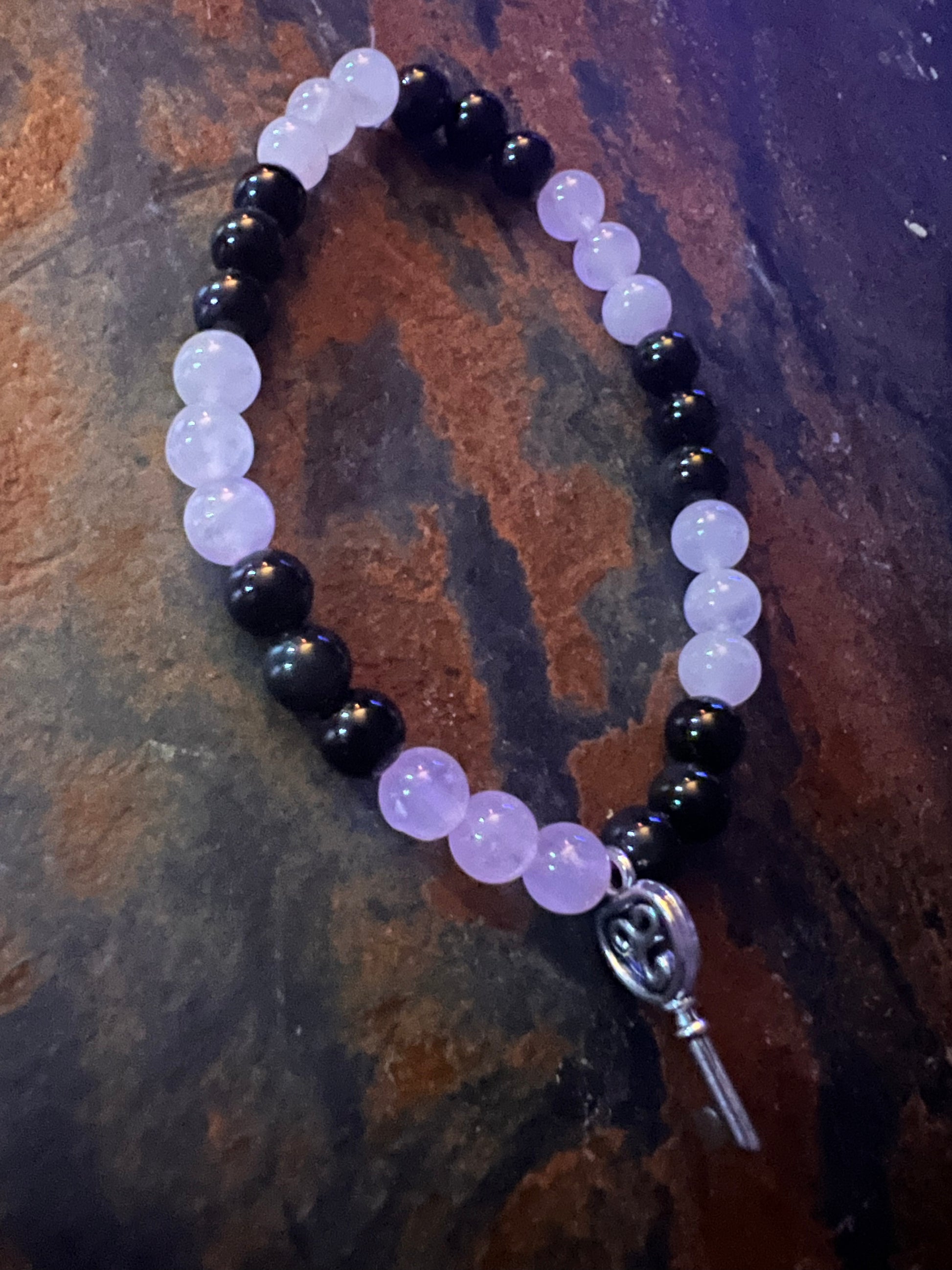 Rose quartz and black obsidian blessed to attract love and protect your heart. The key is to unlock your heart to be open to the love you desire ❤️