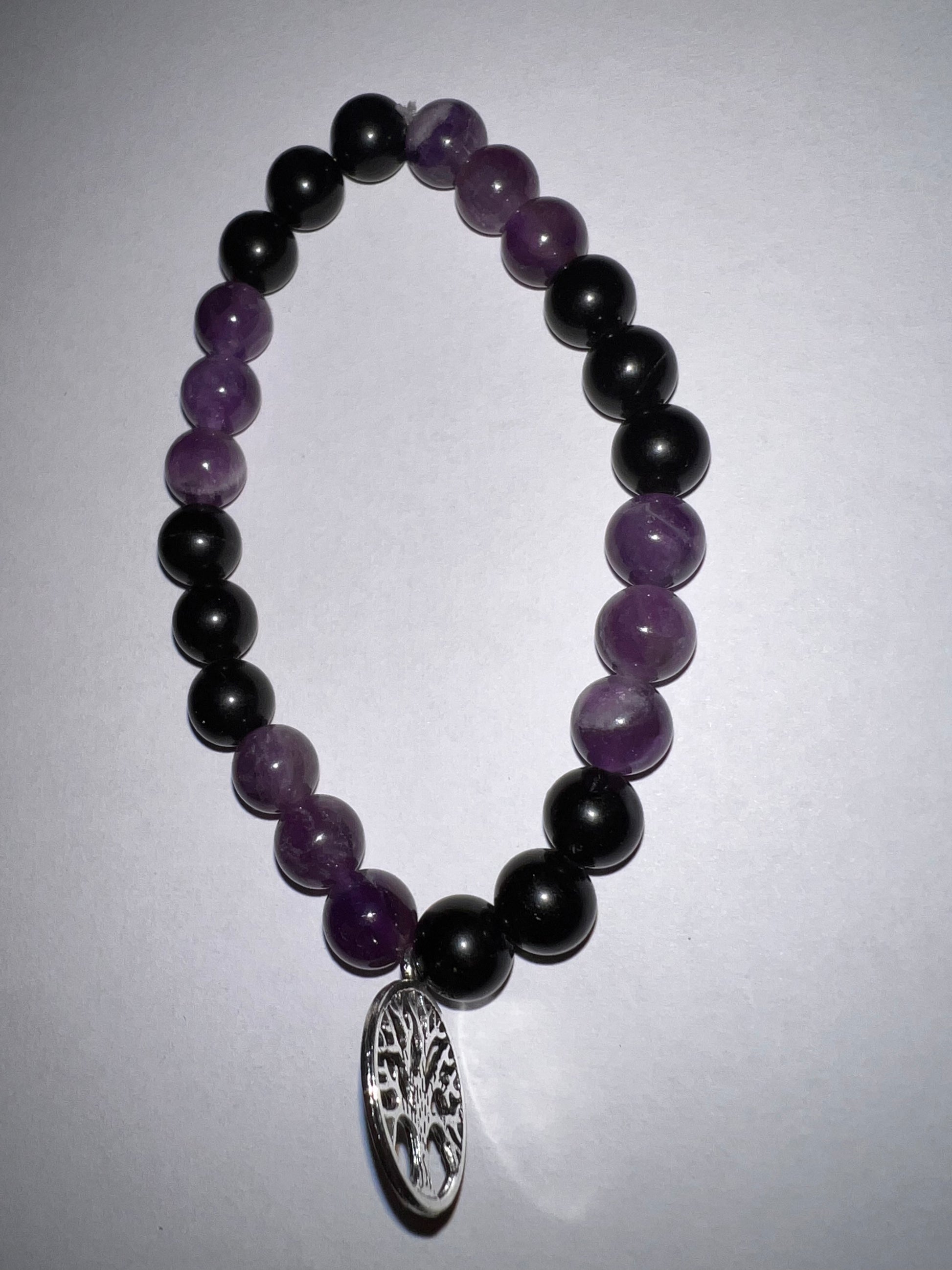 Bracelet blessed amethyst for psychic protection and black obsidian for protection against negative energy